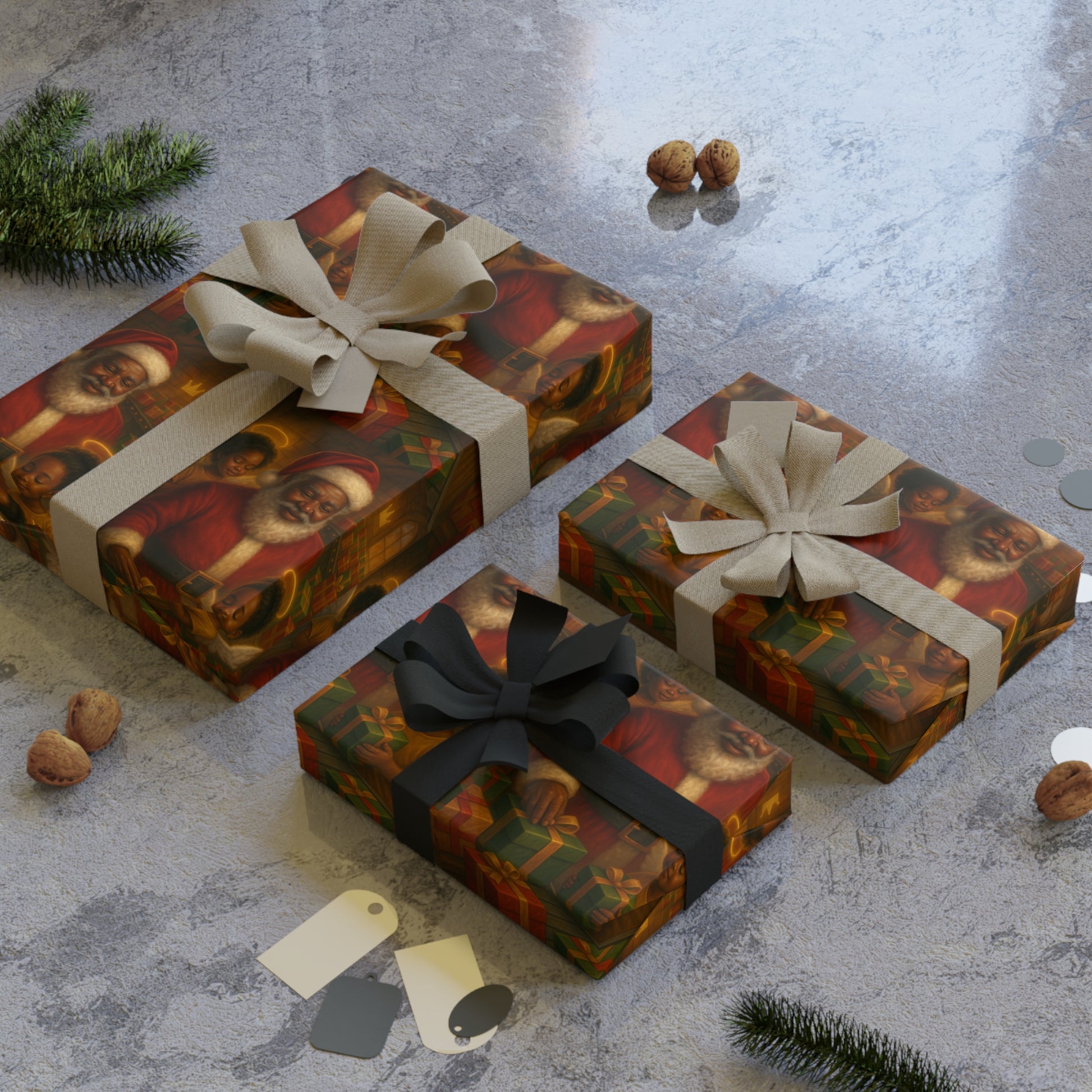 Vintage Santa Gift Wrapping Paper Roll, Festive Holiday Wrap for Christmas, Birthdays, Kid's Parties, Eco-Friendly Gift Packaging